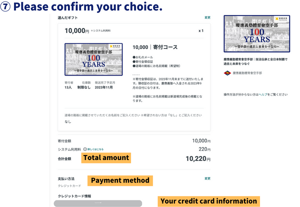 ※寄付金領収証は、2023年11月末までに送付いたします。領収証の日付は、慶應義塾へ入金される2023年9月の日付になります。