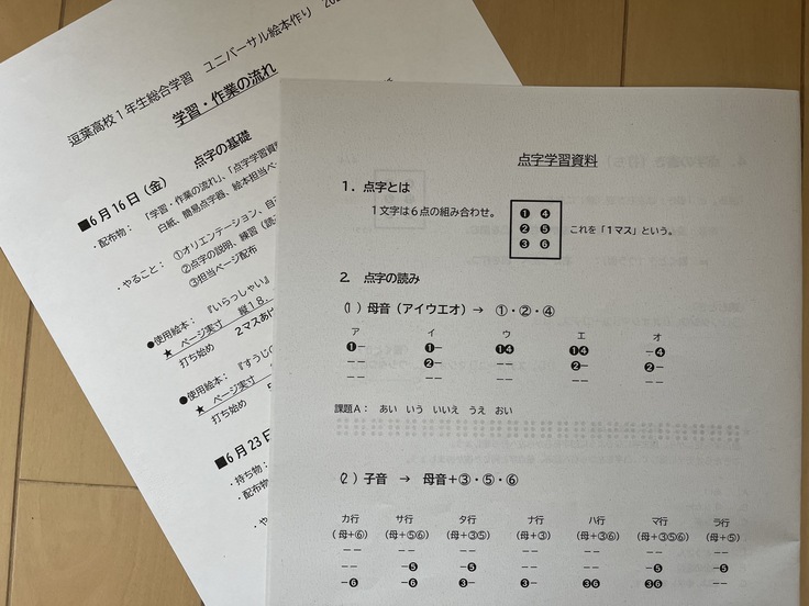 県立逗子葉山高校の地域講師によるワークショップ、県内でも珍しいユニークな取り組みです。火星にゴスペルに街並みデザイン・・10講座くらいから好きなものを選んで学べます。私の担当はユニバーサル絵本製作講座、点字の仕組みを一から学び一人1枚シートを打って皆で2冊仕上げます。実は私、恥ずかしながら初代講師で今年12年目。今年は点字の書き=裏から鏡文字を打つ=に苦労する子がちょっと多いかなぁ・・みんなガンバレ~、来週23日はいよいよ本番シートを打ちます。