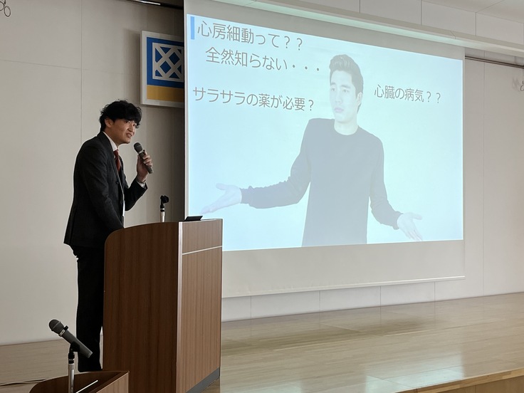 私は心房細動という不整脈が脳梗塞の原因となること、心房細動の診断と治療、今回のプロジェクトに関して山口県の現状とクラウドファンディングを行っていることをお話ししました。