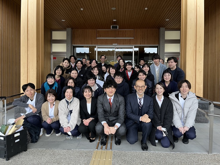 最後は関係者全員で記念撮影を行いました。ご協力いただいた萩市職員の皆様、玉木病院、都志見病院、萩市民病院、山口大学医学部附属病院のスタッフの皆様、エルゴメータ展示を行ってくださったフクダ電子さま、誠にありがとうございました。