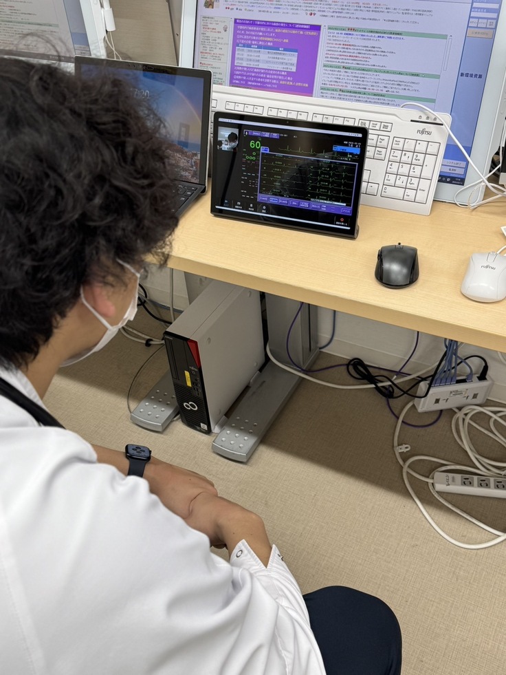 この端末を使用すれば、救急車の中で取得した心電図をリアルタイムで心臓カテーテル治療を行っている病院で確認することができます。病院間の難しい患者さんの相談にも応用しようと考えています。今回のデモでは長門市の消防にご協力いただき、救急車と大学を繋いで実際に心電図がクリアに閲覧できることを確認しました。