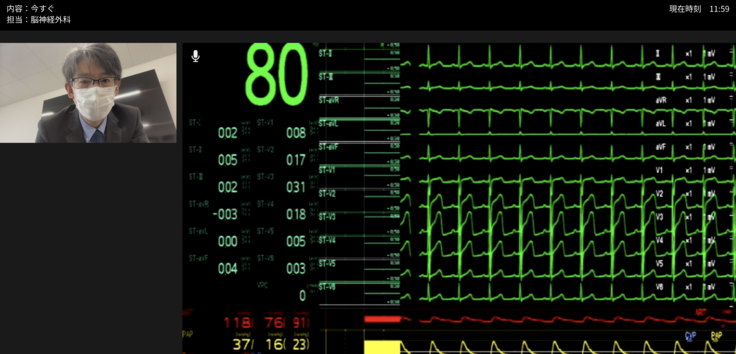 本システムを用いることで、救急車内の心電図や患者さんの状況をリアルタイムで大病院において確認が可能です。これだけクリアに確認が可能であれば、離れていても正確な診断が可能です。