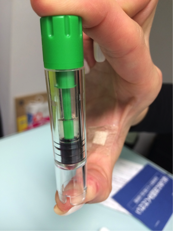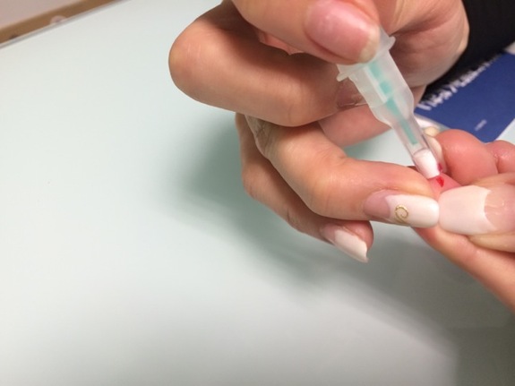 (こちらの容器に血液を入れて頂き、検査をします。)