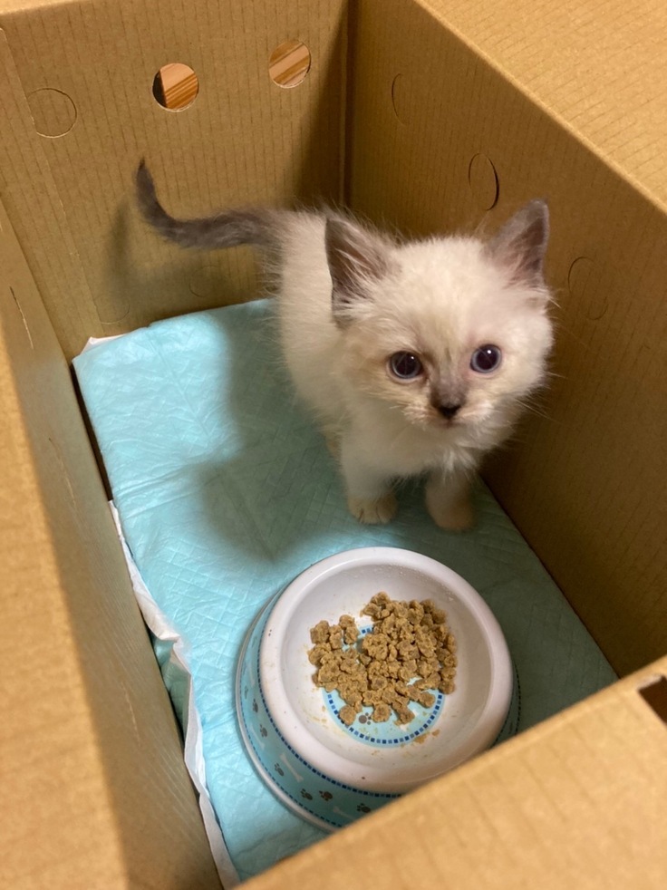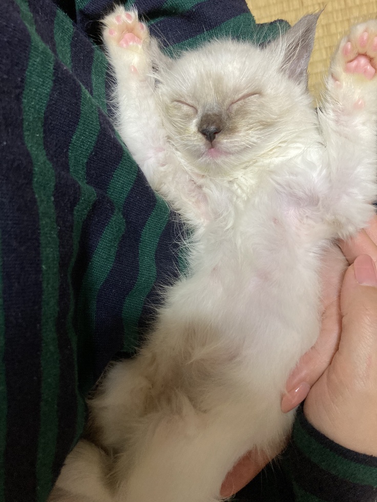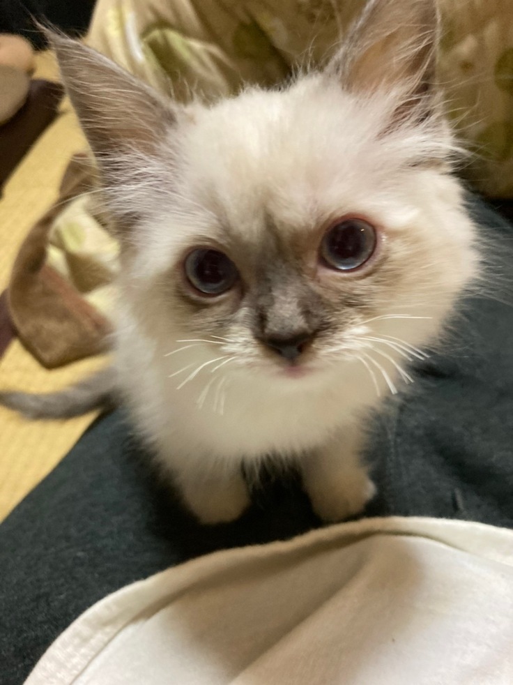 こちらが私たちの家族のラグドールの男の子、けんたろうです。(2020年8月5日生、下の写真は同年10月にお迎えした日のものです。)