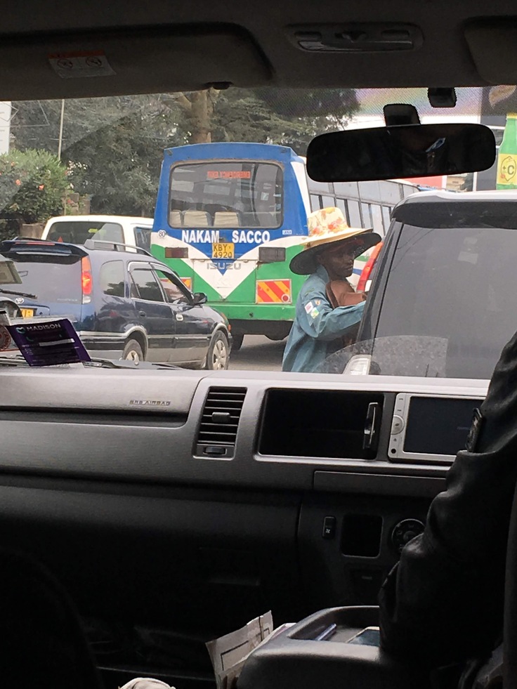移動する車のなかでケニアと日本の違いを感じた。空港から市内に伸びる道路、信号機は全く無く中国企業の広告が至る所にあった。ボロボロの車で揺れも激しく乗っていて怖かった。なかでも印象的だったのは、道路上で商品を売る人々だ。日本では考えられないが幹線道路上で新聞や帽子を売っていた。買う方も車を止めて買うのでとても危険に感じた。
