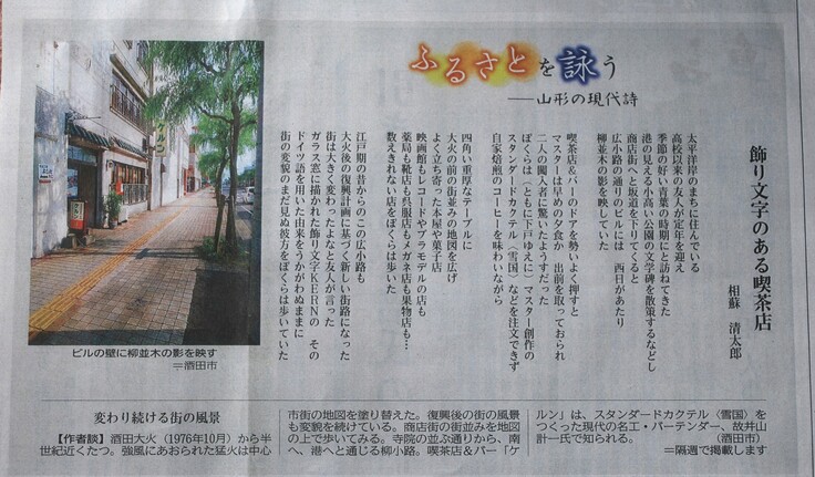 酒田在住の詩人の方よりケルンへの想いを詠んで頂き、山形新聞に掲載されました。