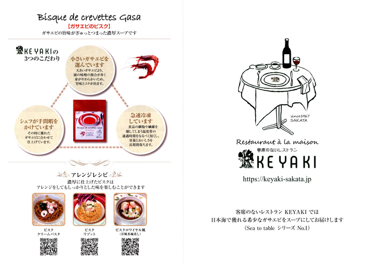 「レストラン﨔」で創業当初から提供していた「ガサエビのビスク」を、急速冷凍で美味しさをそのままにお届けします。