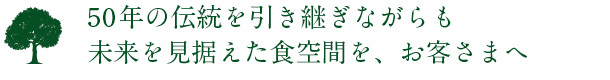 50年の伝統継承と未来を見据えた食空間をお客さまに提供するために、ネクストゴールに挑戦します。