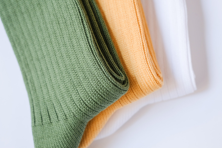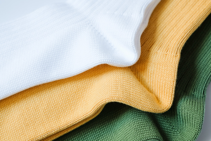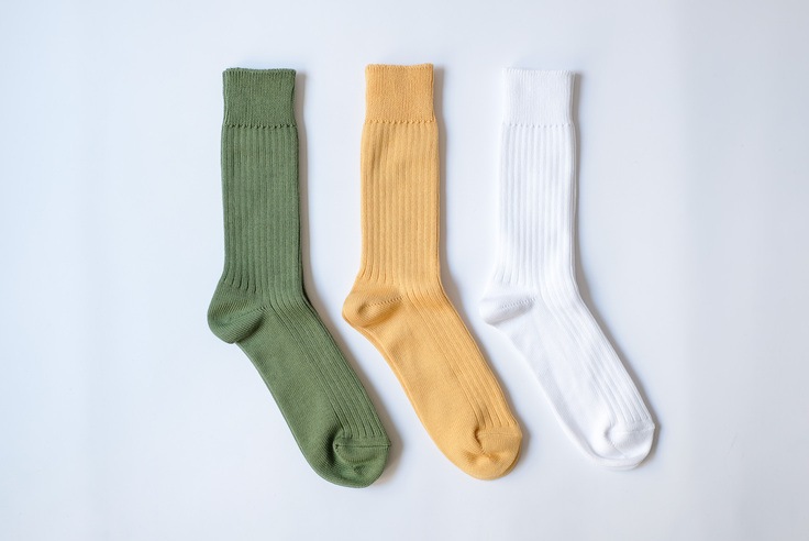 適度な厚みとボリュームがあり、スニーカーから革靴までどんな靴にも合わせやすいソックスです。