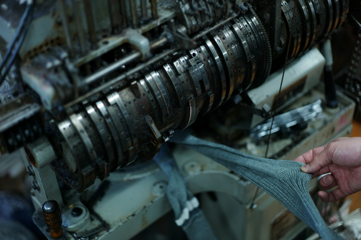 熟練の職人さんたちの経験がものを言う日本製のソックス。