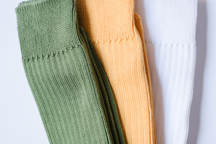 このリブの本数によってソックス全体のイメージが大きく変わるので、他のソックスとは差別化したいけれどバランス悪くなったら元も子もない、という悩みを乗り越えて製作し良い塩梅に仕上がっていると自負しております。