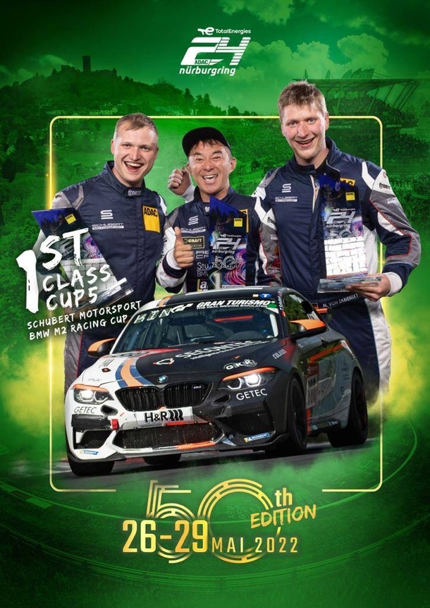 ニュルブルクリンク24時間レース直後にトロフィー授与式がありました。ただ受け取るだけかと思っていたのですが、レーシングスーツ着用で参加せよとのこと。そこではカメラマンが待機しており「 もっとはしゃいで!」とあおる。その時のカットがこれです。何か記念写真か何かだろうとしか思ってませんでしたが、まさかこんなポートレートに加工されるなんて想像もしていなかった。僕の長いニュルブルクリンク人生でもはじめてのセレモニーでしたね。