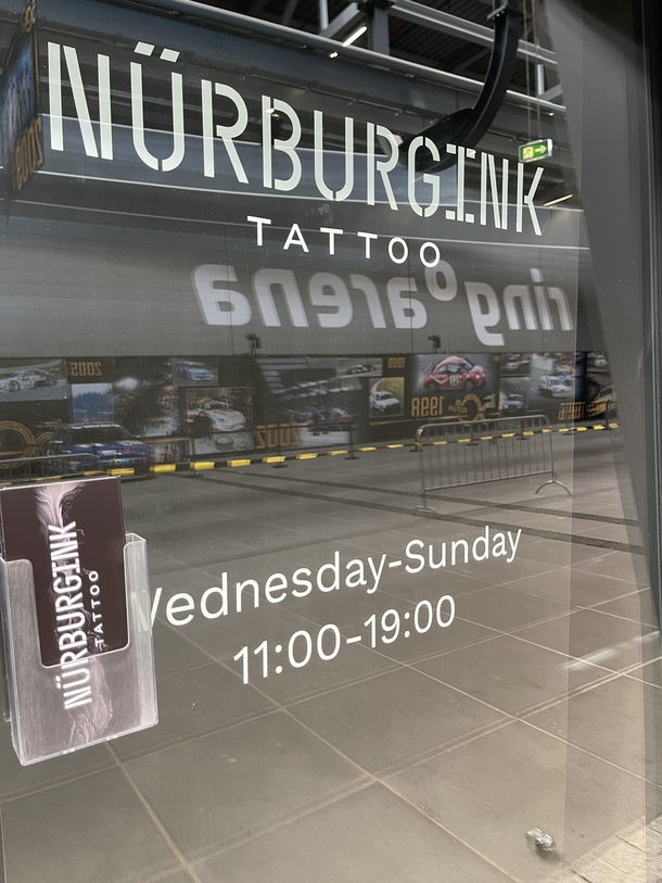 身も心もニュルブルクリンクに捧げちゃっている。ならば「タトゥー、いくしかないっしょ」。悪魔の囁きが聞こえる。しかも、グランドスタンド裏に施術の店がある。24時間レースの合間に墨入れすることも可能なのだ。レース終わったら、腕にノルドシュライフェが描かれていたりしてね。なんて想像してワクワクしたけれど、今回は思い留まりました。今回はね………😜