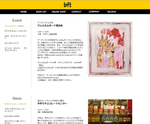 【LOFT名古屋のHPにて紹介いただき、アーティスト達の作品をPR】