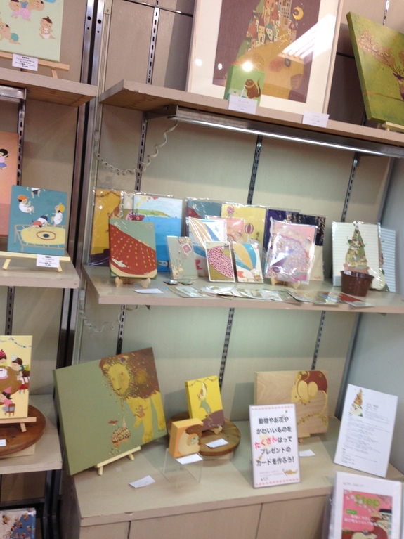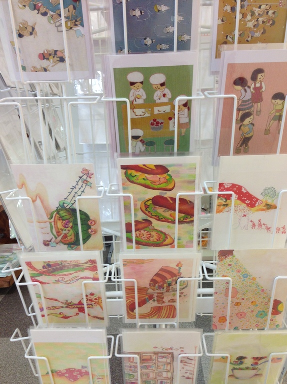 【定番のポストカードや作品の販売風景】
