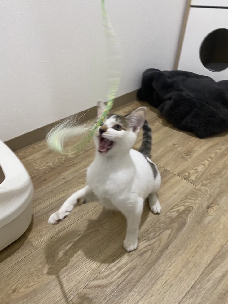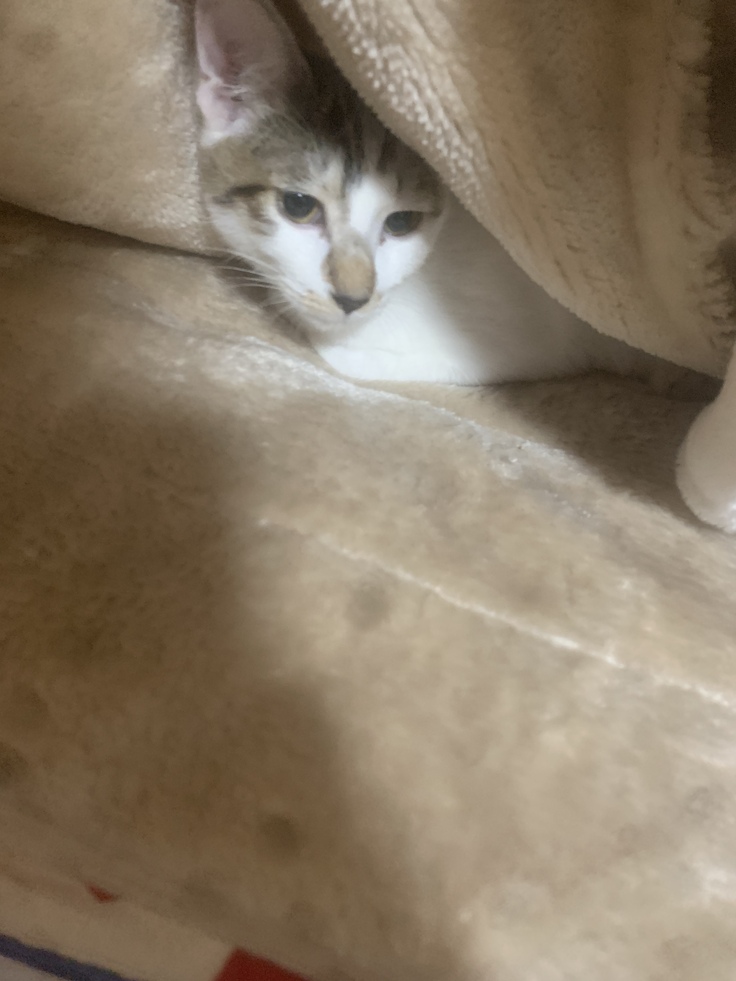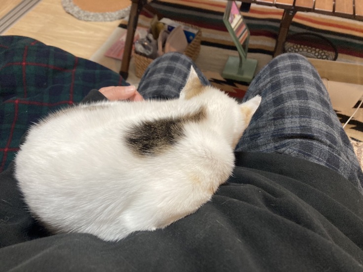 初日なので緊張しているのかなと思いましたが、すぐにスリスリしてきたり、膝の上に乗ってくる甘えん坊でした。