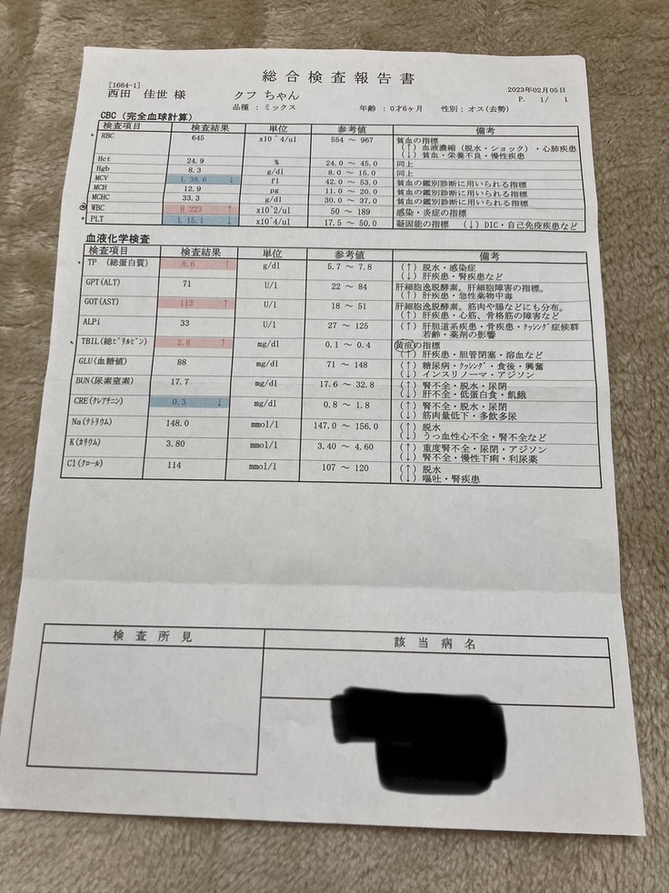 最初に診察して頂いた動物病院様から正式に診断書が届きました。