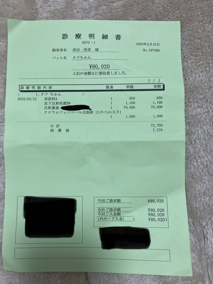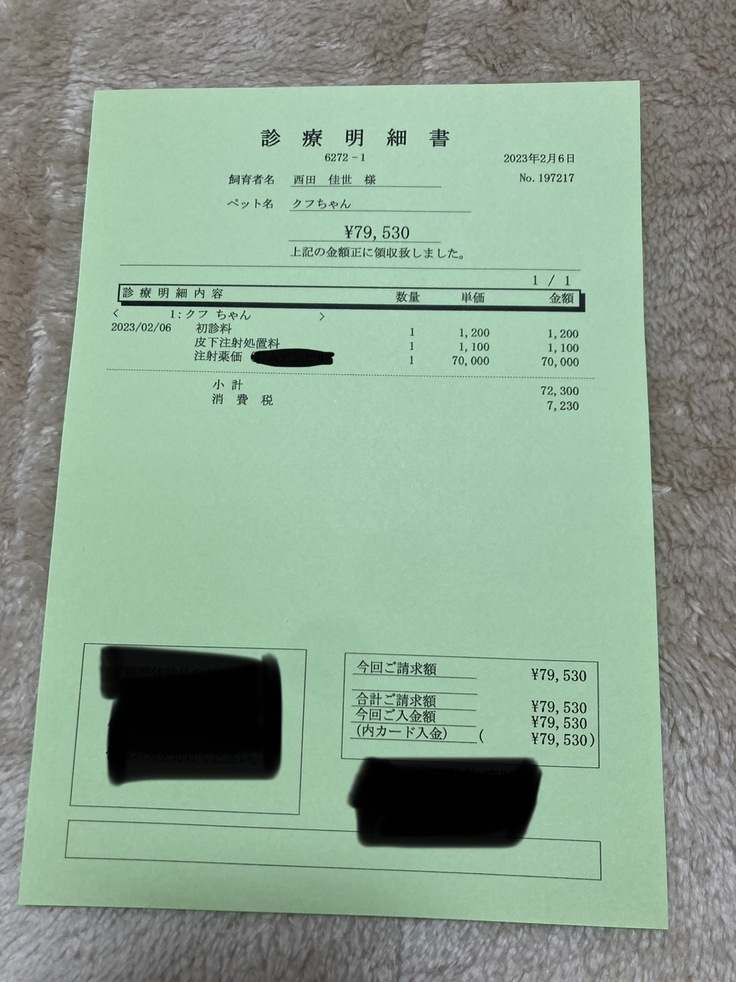 昨年西田の実家の猫が結石になり動物病院の治療費は高額である事は知っておりました。