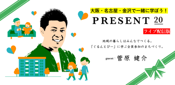 これから各地域でも独自の取組を、それぞれのエリアの皆さんと考え実践していこうと思いますが、まずは私たちの活動を知っていただくため、7月7日に東京で開催されるイベント【PRESENT_20 菅原健介 地域の暮らしはみんなでつくる。「ぐるんとびー」に学ぶ全員参加の街づくり。】を名古屋・金沢、そして既に活動を展開している大阪でオンライン中継します!