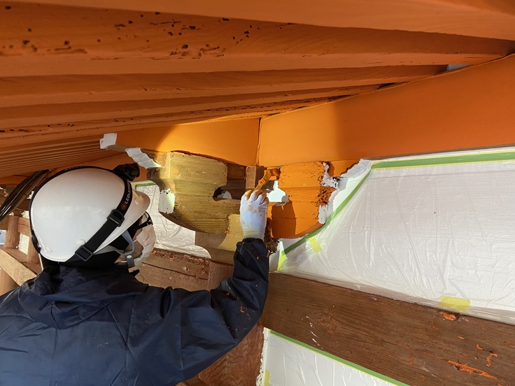 幾つかの要因で進行が遅れております事をご報告させていただきます。特に3月の塗布の段階に入っての低温や長雨による髙い湿度により作業日数が限られてしまった影響が大きく、プロジェクトのスケジュールが遅延してしまいました。