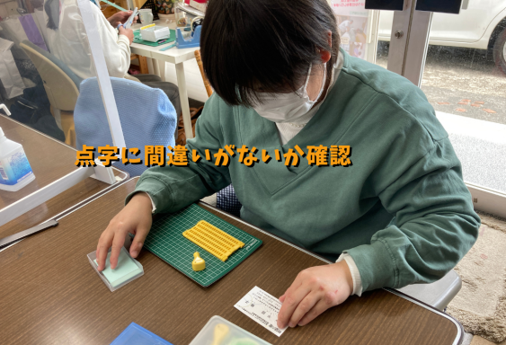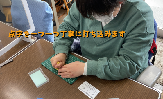 ・点字付き名刺や点字表示作製(建物や自動販売機)。点字名刺は1枚1枚丁寧に手打ちで作製