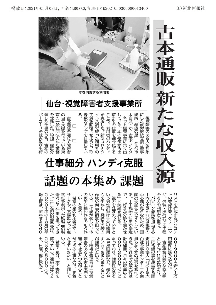 ※河北新報の記事(令和3年5月3日朝刊)「河北新報様より許諾を得て画像を掲載しています」