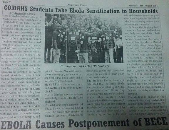 アフリカ地域におけるエボラ出血熱の猛烈な流行に伴い、国際医学生連盟ギニア支部・シエラレオネ支部はエボラ出血熱に関する正しい知識を人々に伝えるための啓発活動「Kick Ebola Out」を今年8月に立ち上げました。