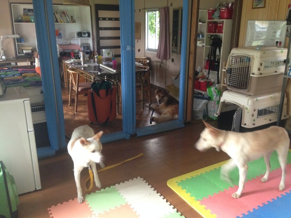 広くなったトレーニング部屋で、キドックスの訓練生たちも暑さに負けずに保護犬たちのトレーニングに励んでいます^^