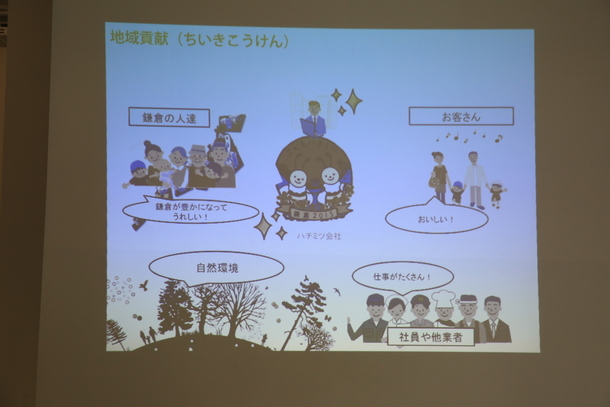 鎌倉で活躍する社長たちからビジネスの仕組みを学び、商品開発をし、販売までします。面白法人カヤックの社長・柳澤(通称やなさん)の「アイデアの出し方講座」が一番人気です。パタゴニアの辻井社長もエシカル企業・ローカル企業の社会的意義などについてお話しくださいます。