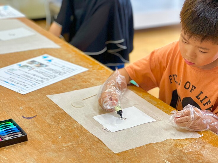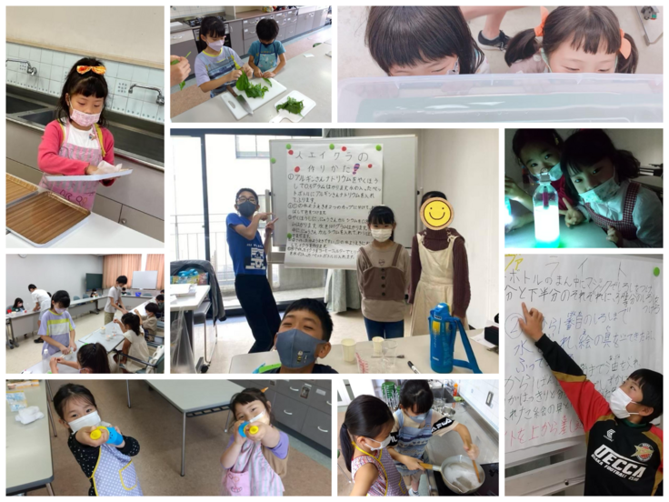 科学実験教室ではスライム作りやサイエンスクッキングなど、簡単なものづくりや身近なものごとを科学的に解説しながら行なっています。