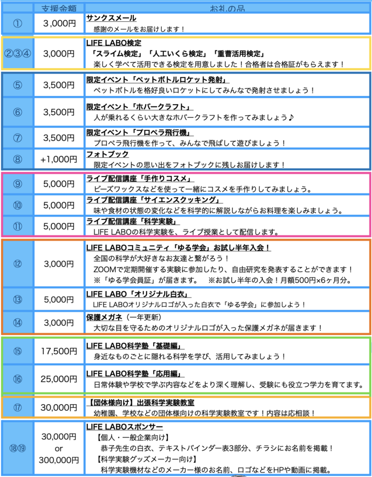 各種イベント、講座などのリターンとセットでご支援ください。