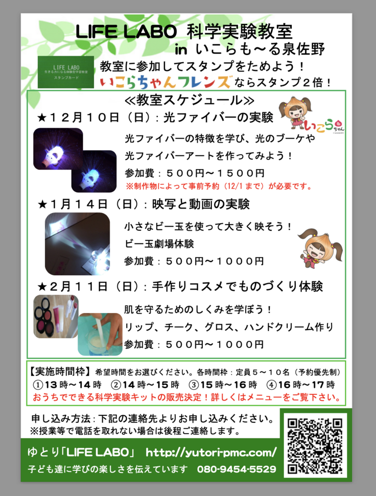 2月11日(日)に、泉佐野市にあるいこらも〜る泉佐野様にて教室を行います⭐️