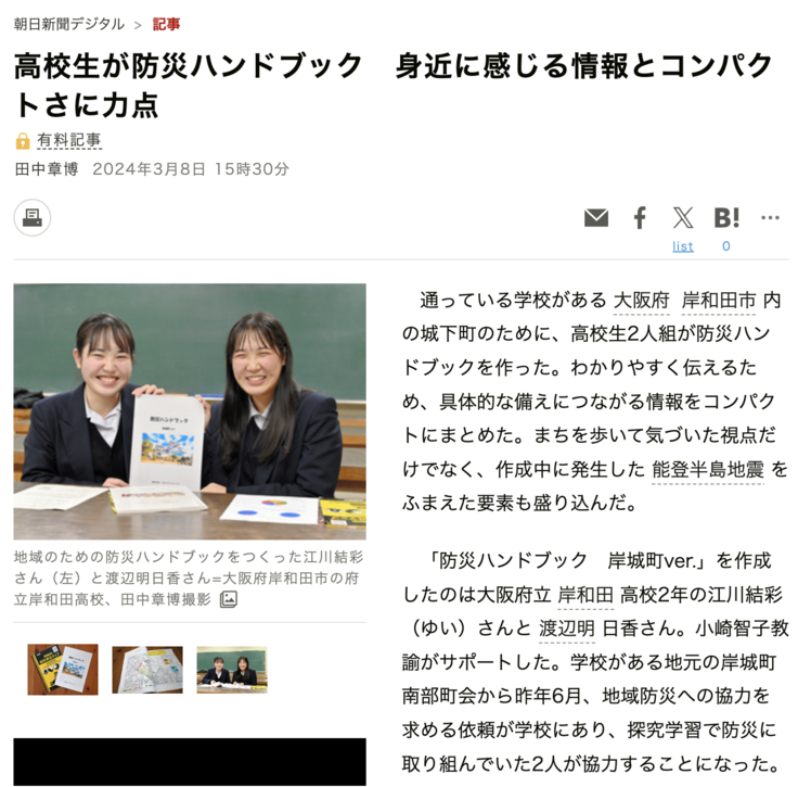 防災をテーマに、いろんなところから可能性を考え、こうして取材を受けて紹介してもらえて…