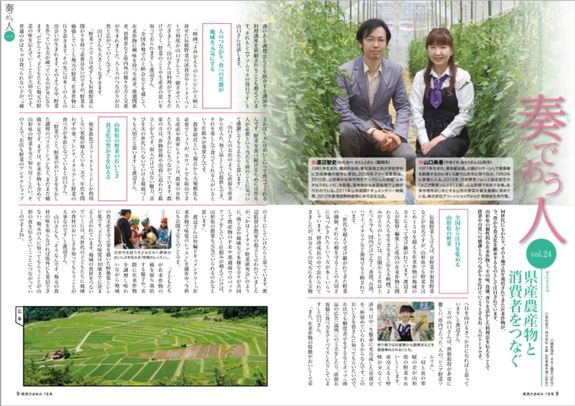 山形県広報誌「県民のあゆみ」7月号に、活動について取り上げていただきました!野菜ソムリエの山口さんと渡辺の対談です。
