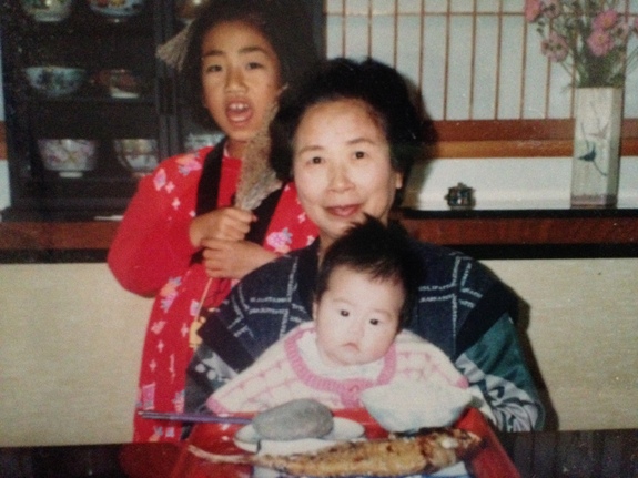 (祖母との思い出写真。22年前、妹のお食い初めにて)