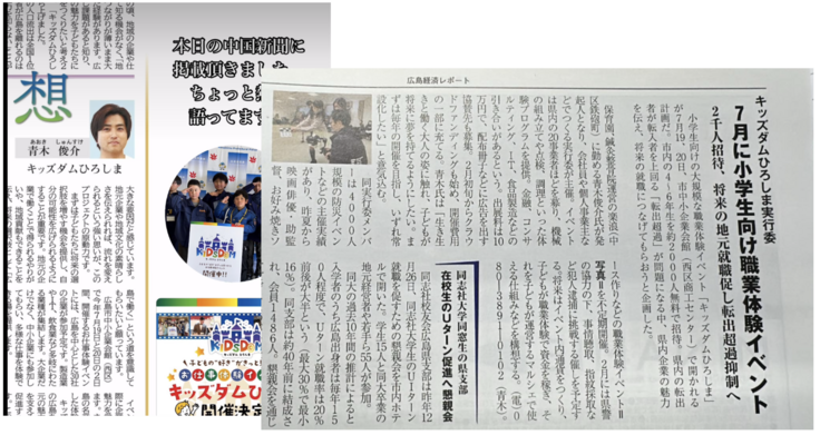 このクラウドファンディングのプロジェクトでもあるように、成長してきた子どもたちが地元の企業や行政機関の仕事を体験する【キッズダムひろしま2025】の実行委員会を有志で立ち上げ、イベント開催準備を行なっています。