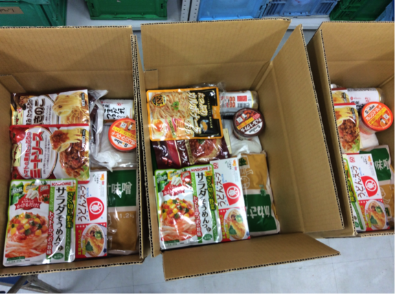 お米、パスタ、レトルト、調味料、お茶、お菓子など、可能な限りたくさん入れるようにしています。