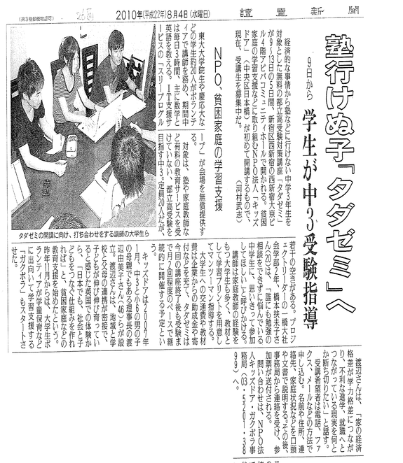 2010年8月4日に、読売新聞東京版に掲載していただいた記事も是非一度ご覧になってください!!