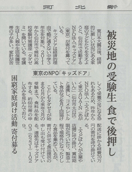 ふうどばんく東北AGAINさんとキッズドアの取り組みが掲載されました!