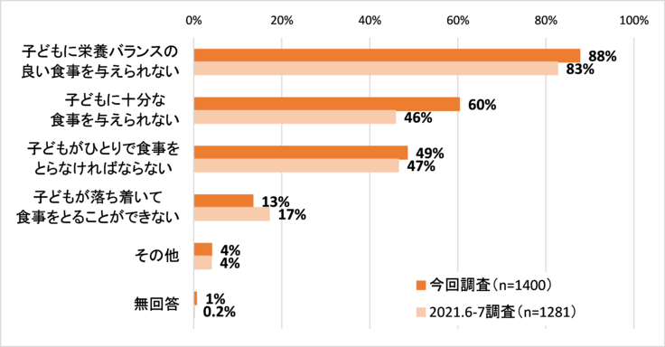 また「子どもの夏休みの食事に不安がある」と答えた家庭が全体の9割超。
