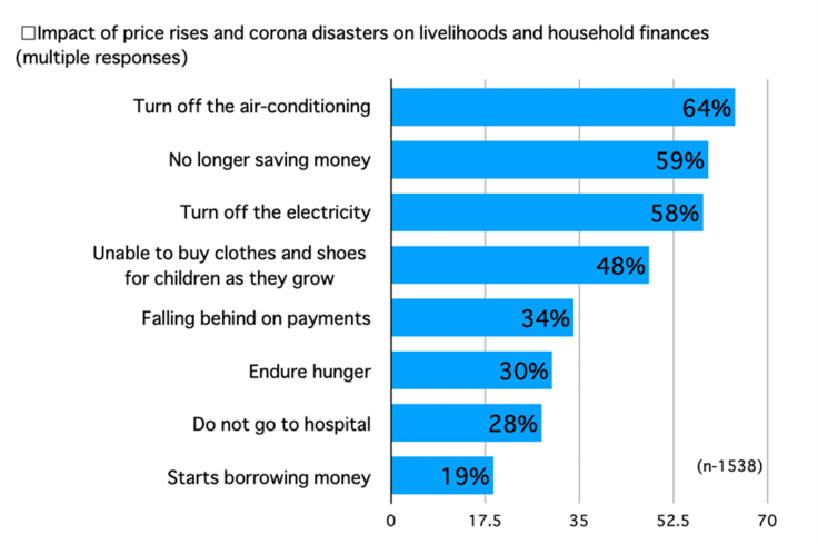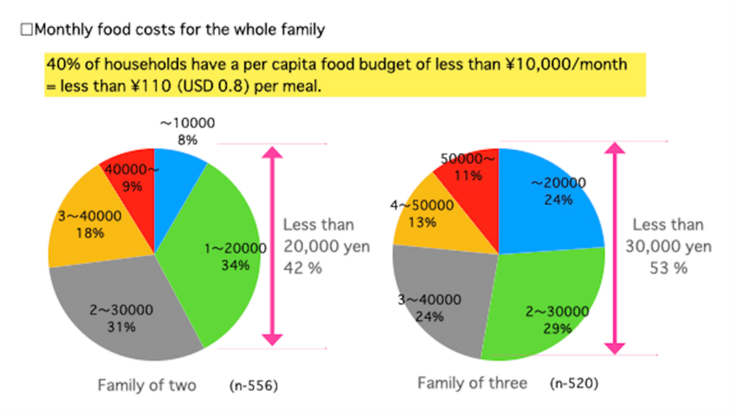 40-50% of families spend less than 10,000 yen (USD70) a month on food per person.
