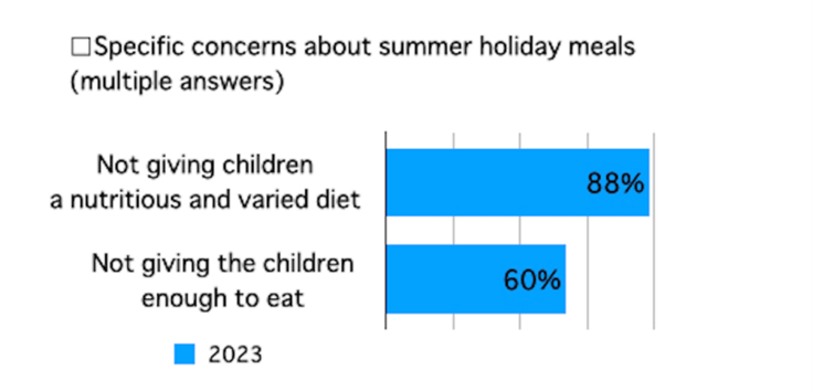 88% of parents are worried that they will not be able to provide their children with a nutritious and balanced diet during the summer holidays, while 60% of parents say they will not be able to provide their children with enough food.