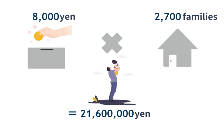 We support about 2,700 needy families who are raising children across Japan, 60% of whom earn less than 2 million yen(USD14k)a year and 86% less than 3 million yen (USD21k).