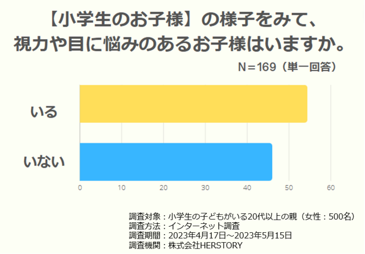 子どもたちのデジタル活用が昔に比べて圧倒的に増えたことによる目の疲れや視力低下について悩んでいることがわかっていました。