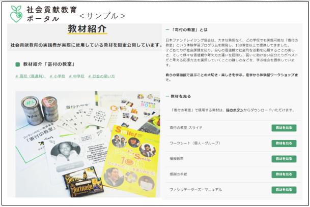 この間、当協会は寄付者と社会貢献教育ファシリテーターと協力し、学校の先生方にも関わっていただき、多様な教材を開発し、『寄付の教室』『社会に貢献するワーショップ』『寄付先を子どもたちが決めるLearning by giving』『寄付を身近にゲームで体験するfrom Me』という4つの教材が生まれました。