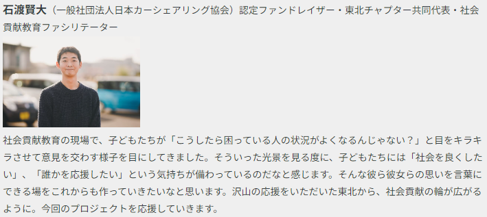 本プロジェクトで思いを紡いでいく際に欠かせないメンバーですし、ぜひ全国のみなさんにも同じ役割として応援・参加を頂けると、とても嬉しいです。