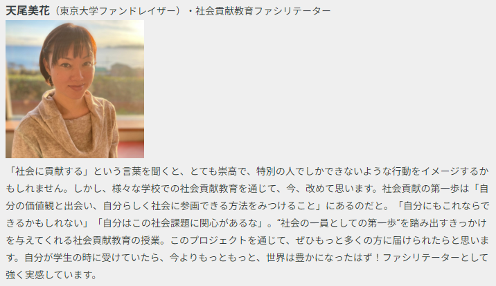 社会貢献教育ファシリテーターや一学校教員としてとして、全国各地でプログラムを展開しているメンバー