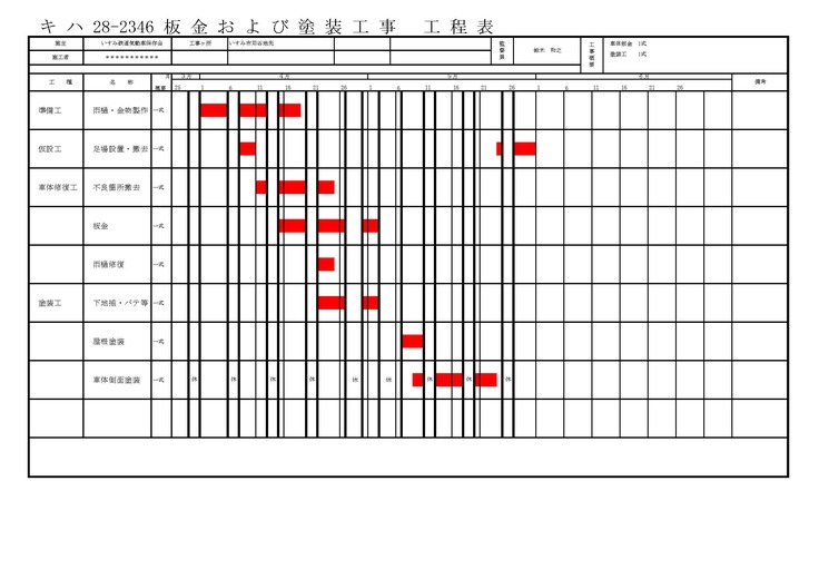 作成した工程表です。なんとか、梅雨時期前には終わりにしたいところですが
