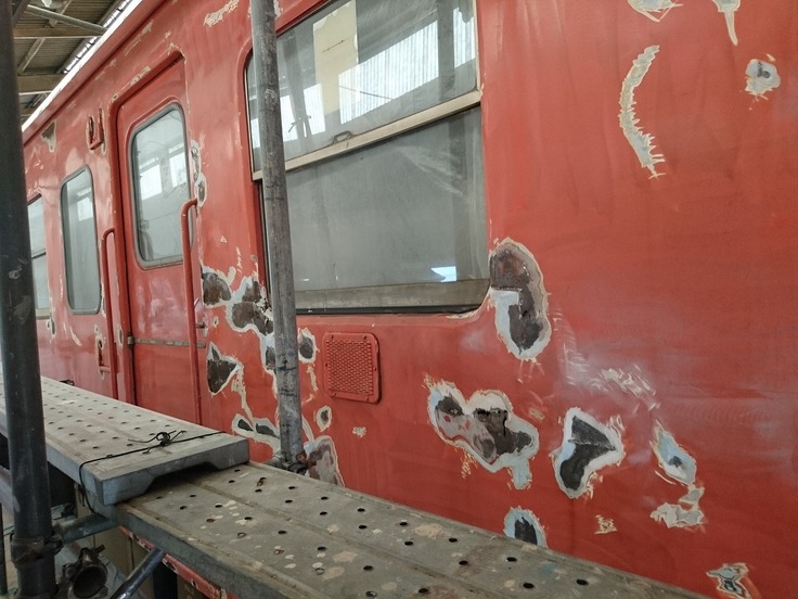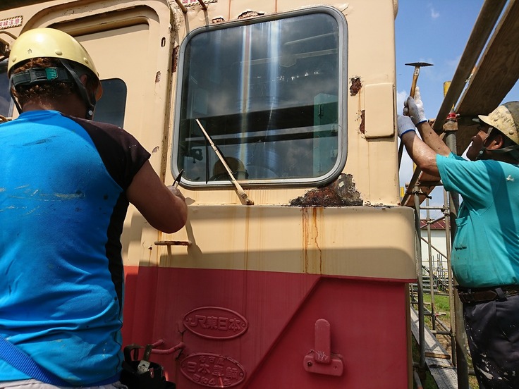 さて、このプロジェクトの目標である「キハ28-2346号車の板金、および塗装工事」ですが