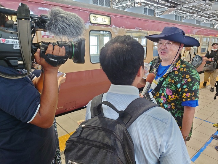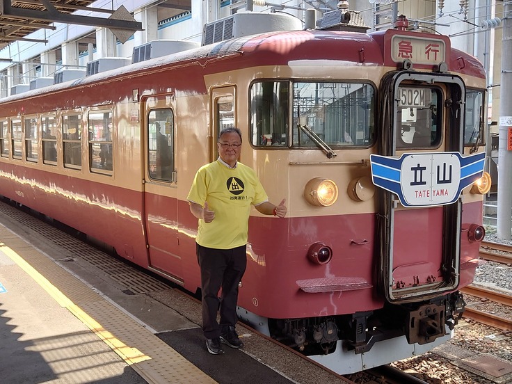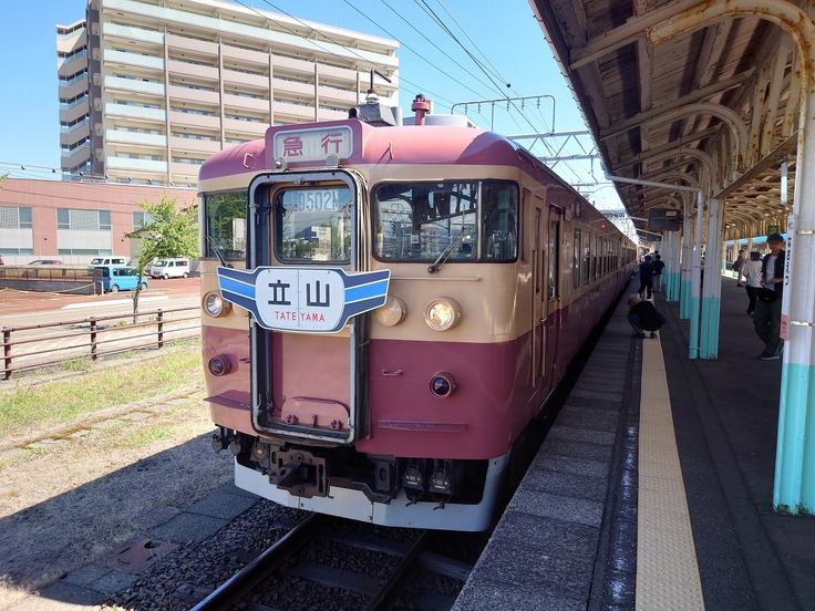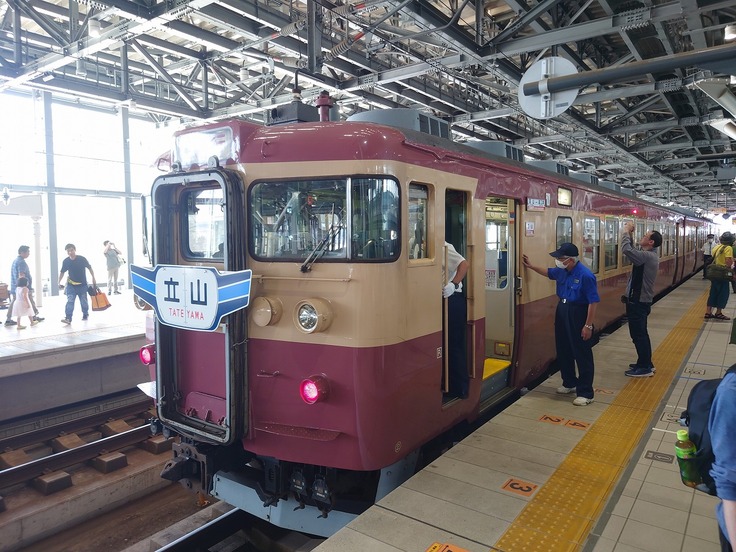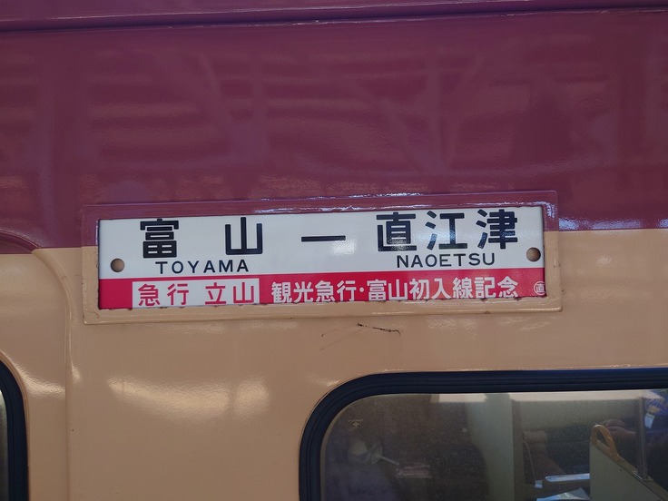 ちなみに昨年8月、この編成を使用し往年の急行立山号を再現したイベント列車が運行されました。当日乗車し、あいの風とやま鉄道の富山まで乗り入れ運転されました際の記録をご覧ください。